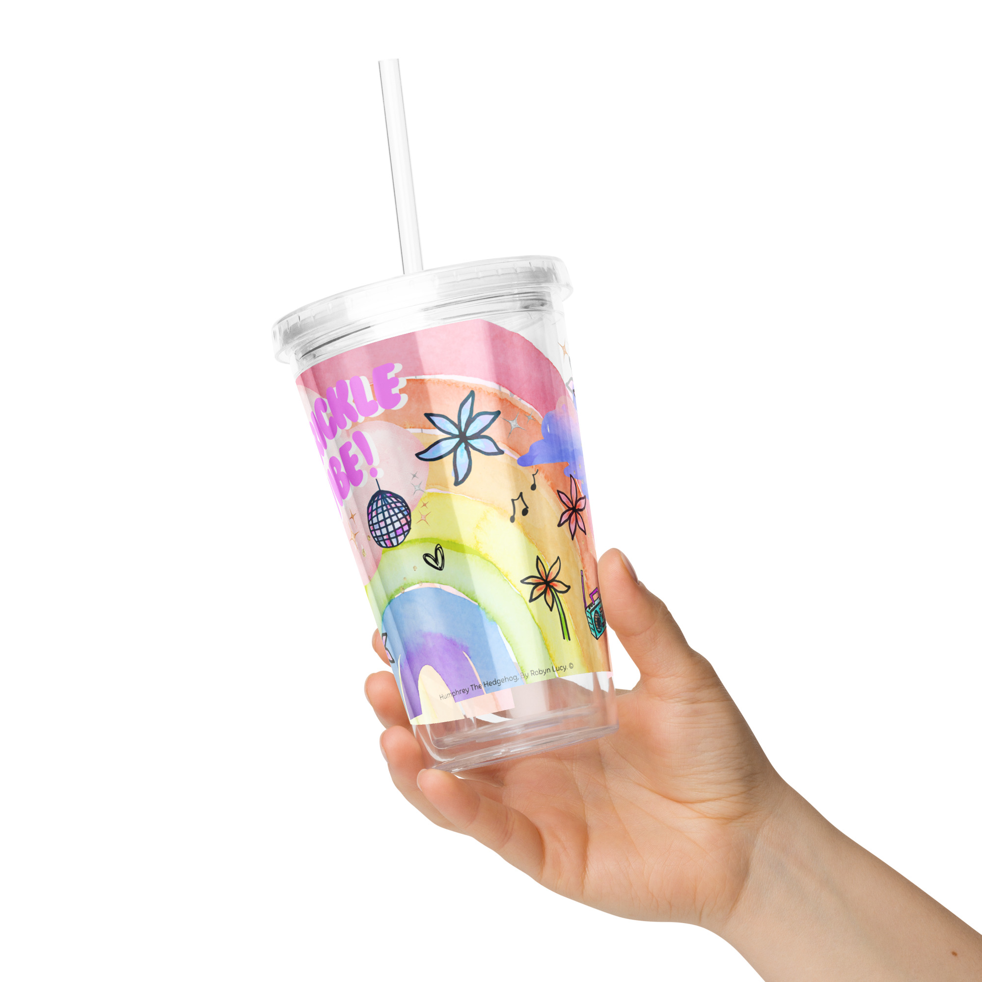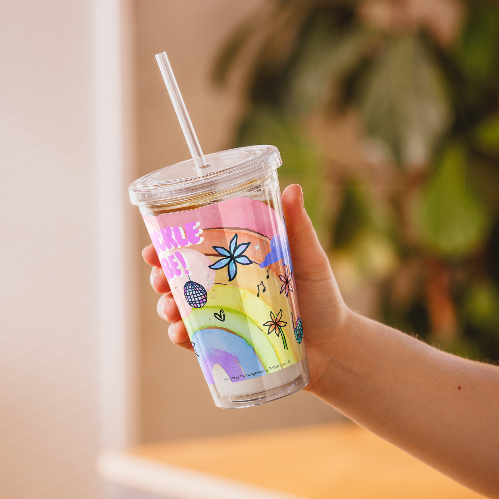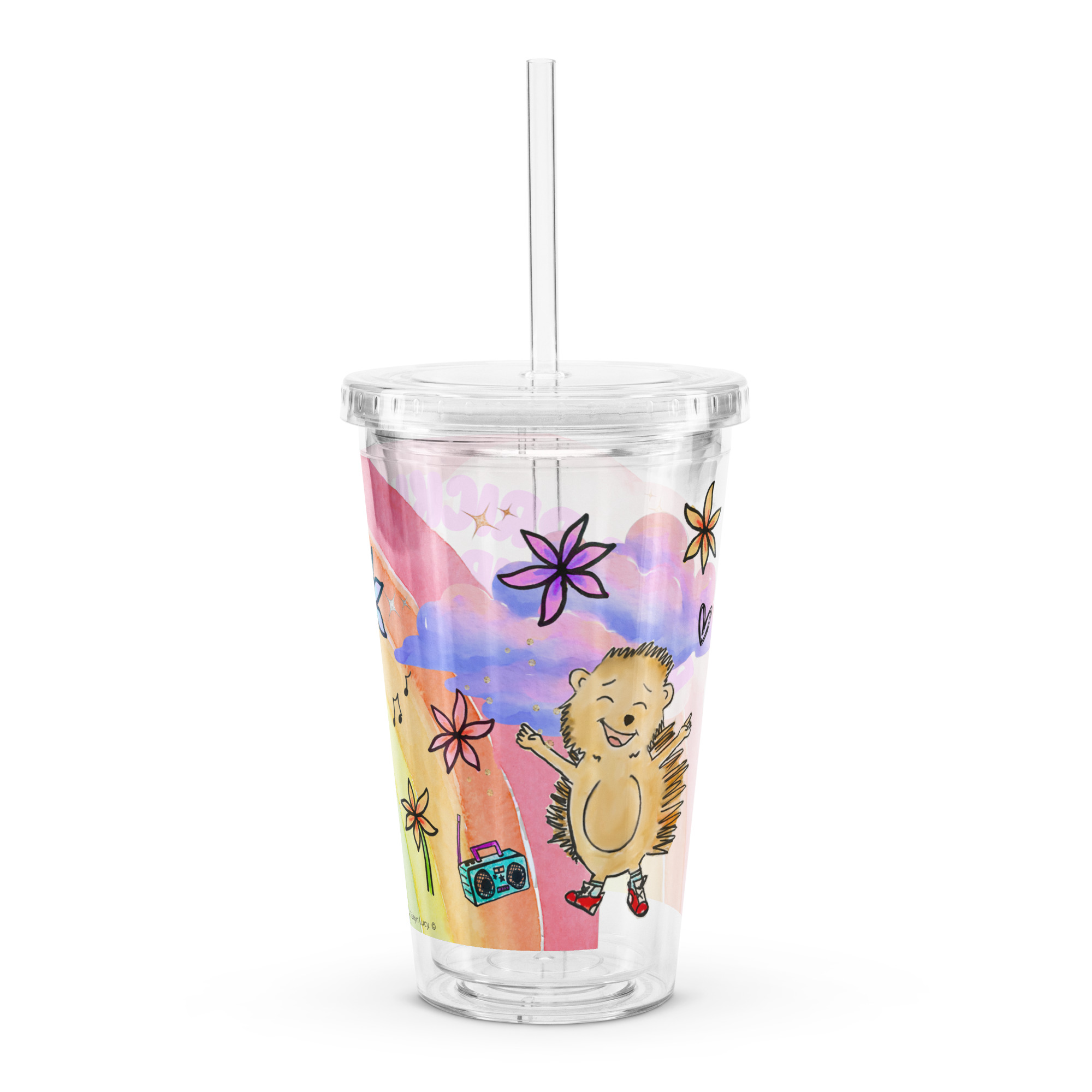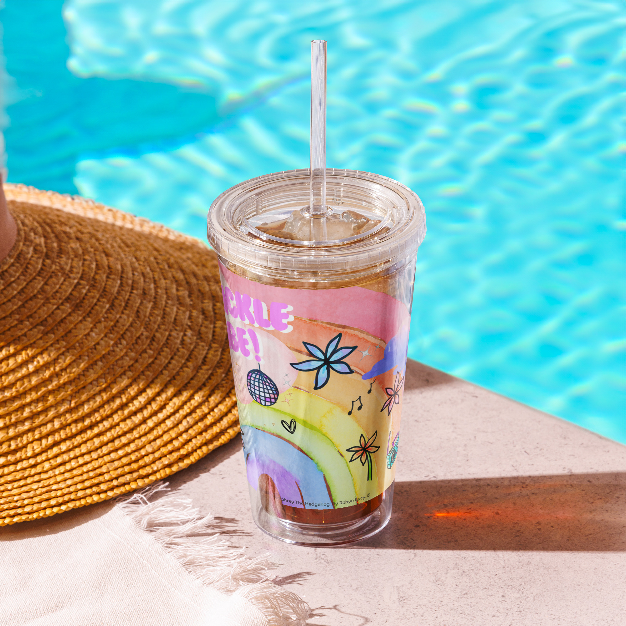 ”Don’t Prickle My Vibe” This drinks tumbler declares! Don’t let other people ruin your mood or bring you down! Enjoy feeling all sunshine, rainbows and flowers when sipping from this colourful bright cup and straw. Comes with a lid and straw for easy sipping on the move. Embrace reusability over single-use plastics without sacrificing style.